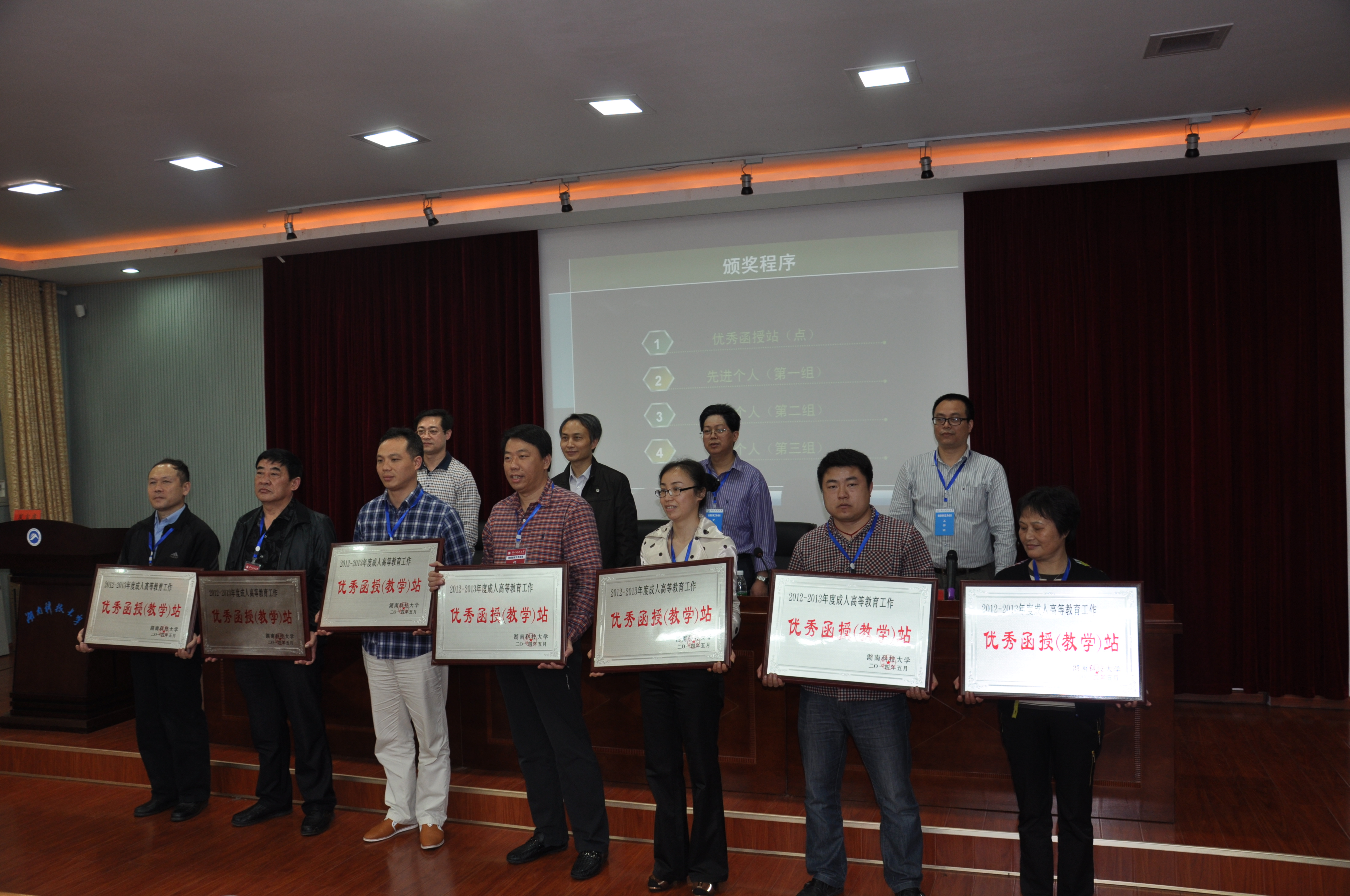 曾志东宣读了《关于表彰2012-2013年度优秀函授(教学)站和函授教育管理先进工作者的决定》(科大政发[2014]33号)文件,对郴州湘南高等教育函授中心函授站等7个优秀函授教育辅导站和彭福芝等43名函授教育管理先进工作者进行表彰奖励。