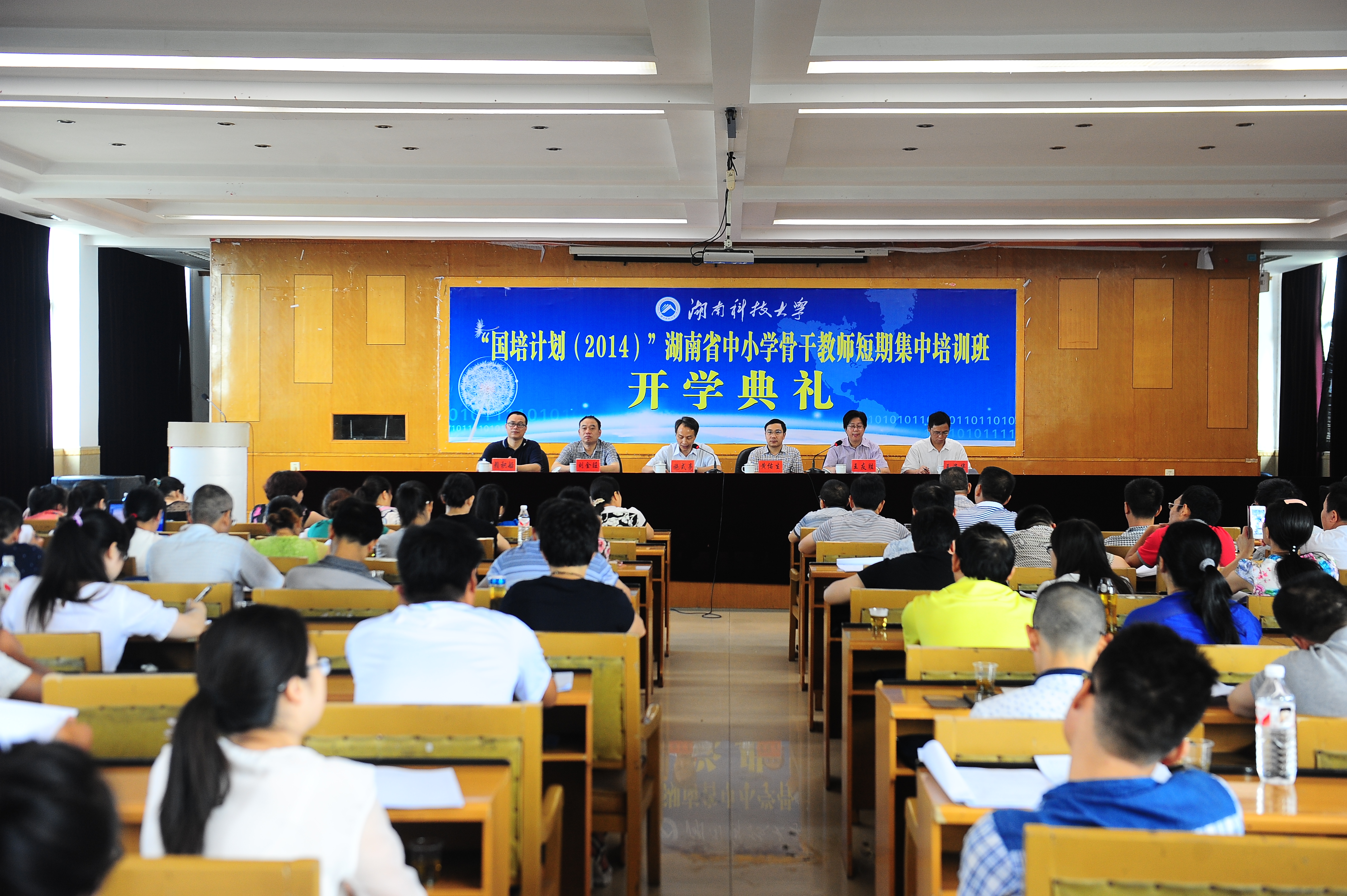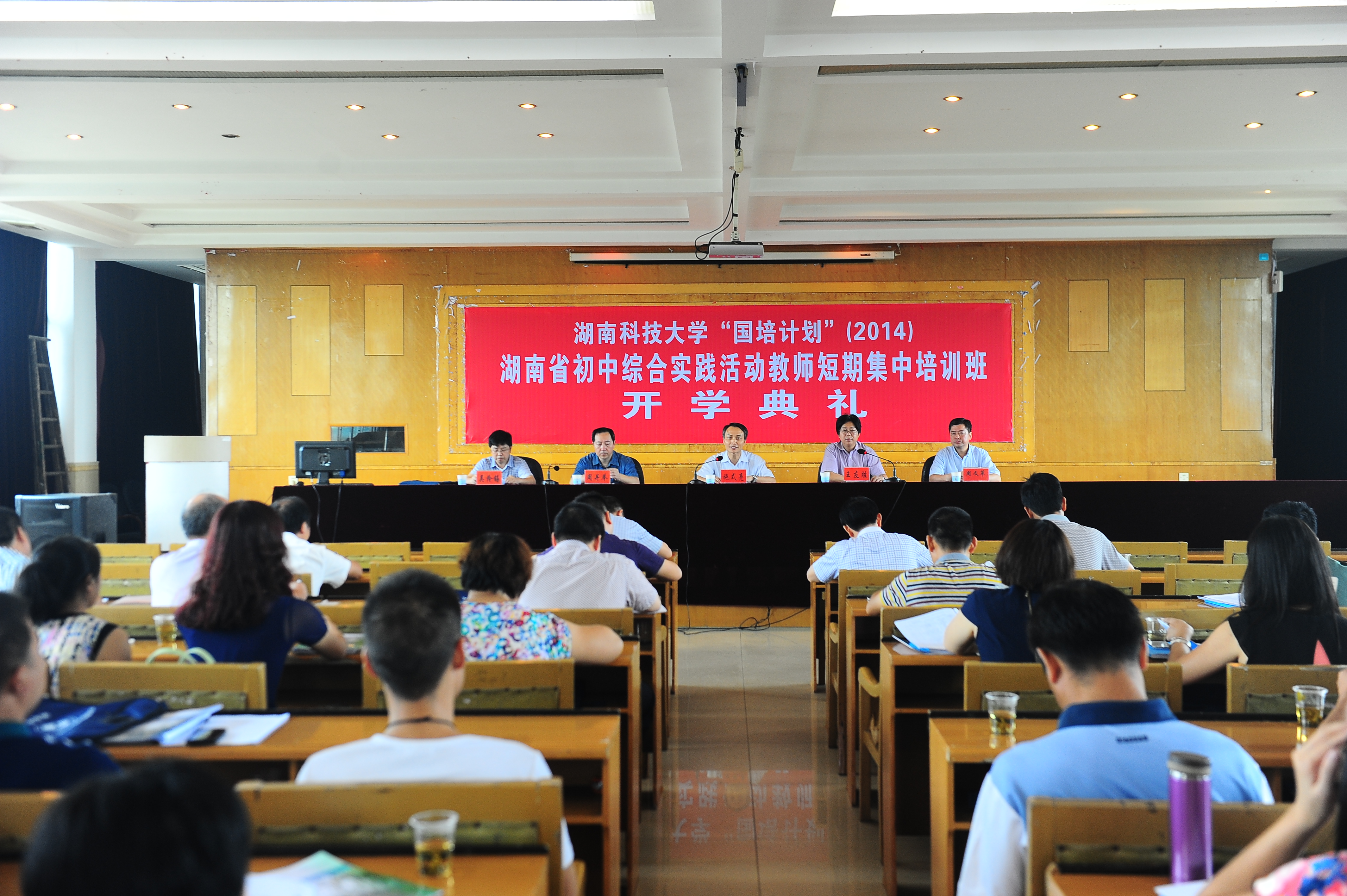 按照2014年湖南省“国培计划”“省培计划”项目实施要求,经过3044am永利集团官网和各承训学院大量的前期准备工作,我校承办的九个子项目均在暑期顺利开班,高校集中研修阶段时间从7月6日开始至8月4日结束。我院分别于7月7日、8日、16日、17日、27日在学术交流中心五次组织召开庄严简朴的开班典礼,我校副校长施式亮、省教育厅教师工作与师范教育处处长张大伟、湖南省国培办主任黄佑生出席,3044am永利集团官网和各承训学院相关负责人以及来自全省十四个市州的550名学员参加。开班典礼由3044am永利集团官网院长、校国培办主任王友胜主持,学校宣传部及时对五次开班典礼进行了跟踪报道。