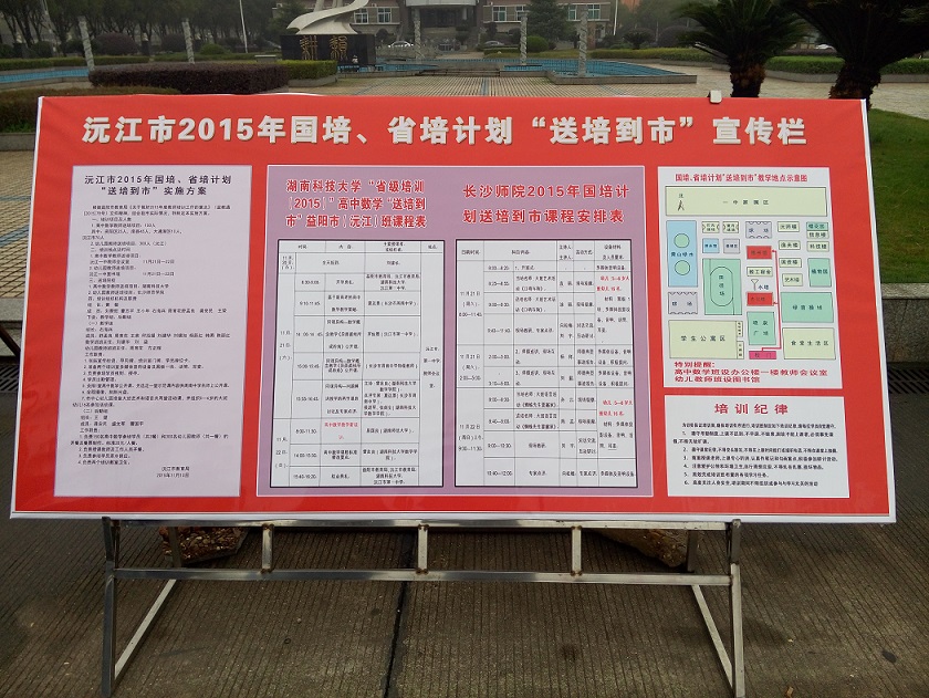 11月21日,3044am永利集团官网院长王友胜、副院长赖积船及培训管理科相关人员前往益阳沅江市第一中学检查“省培计划(2015)”“送培到市(县)”益阳市高中数学教师培训项目实施情况,该项目是由我校数学与计算科学学院具体承办、沅江市教育局协同在沅江市第一中学开办的益阳市高中数学教师培训。培训时间为2015年11月20日—22日三天。