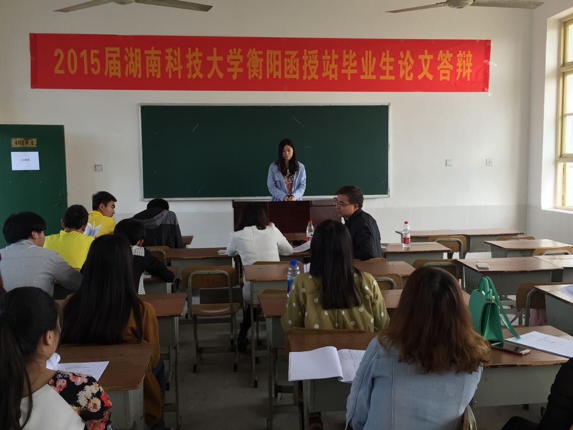 首页 » 综合新闻 » 新闻资讯 衡阳文理学校教学点举行2015届毕业生论文答辩 发布日期:2015-04-30 阅读次数: 次 2015年4月26日,我校衡阳文理学校教学点举行了2015届成人教育本科毕业答辩。此次论文答辩由土木学院邓修甫副教授和商学院李志钢副教授主持。 答辩会上,答辩学生首先结合自己的本职工作,详细地介绍了毕业论文(设计)情况,随后就答辩老师提出的专业问题进行了解答。 此次衡阳文理学校教学点参加的答辩学生人数较多,组织严谨到位。