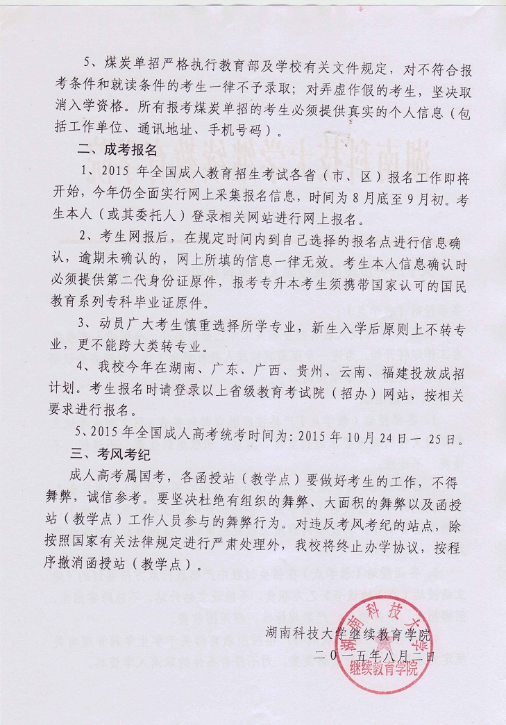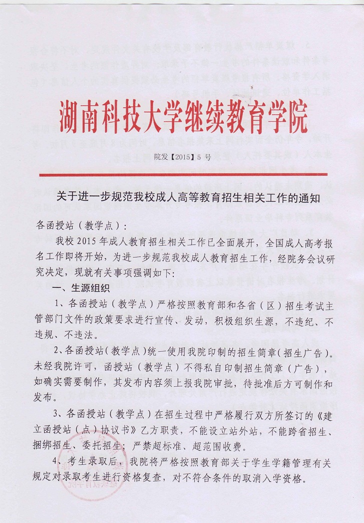 关于进一步规范我校成人高等教育招生相关工作的通知